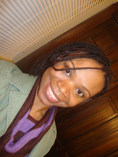 Here I am having my sister Jackie to help me out with week 7. She is putting about 5 braids on each side of my head. Then she two strand twists the rest to give a crinkled look. I had fun wearing this style!
